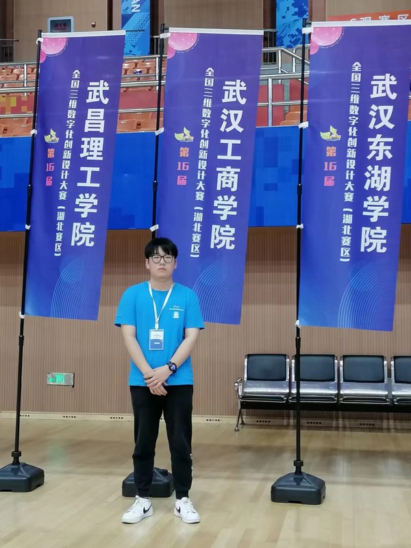 图为王靖丞参加全国三维数字化设计大赛(湖北赛区)