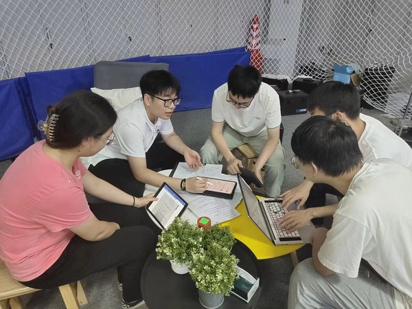 图为王靖丞(左二)参加赛前小组讨论