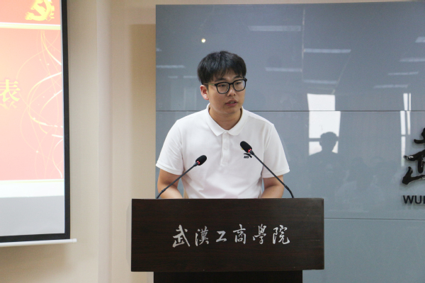 图为王靖丞作为优秀学生党员代表发言