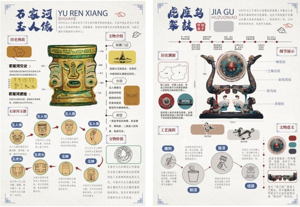 数字媒体艺术专业毕业生陈浩正创作的《智绘荆楚》文物可视化图表,在学院教师李光慧的指导下,以湖北省博物馆的十个“镇馆之宝”为对象,结合现代数字媒体技术手段传承荆楚文物信息内容,在静态图表的基础之上,赋予其裸眼3D的动态效果,设计出了一系列具有荆楚文化特色的可视化图表。
