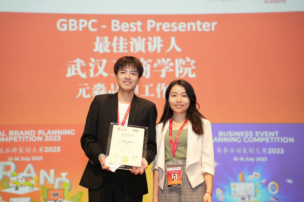 洪泽阳:我想分享一下参加2023年全球品牌策划大赛的经历,当时我从校赛,一路走到省赛、国赛,乃至最后有幸和三位学姐组成元淼品牌工作室参加全球赛,团队最终取得了总决赛亚军的好成绩,我个人也获得了“最佳演讲人”单项奖。备赛期间,我们经常加班加点到深夜,项目组每天都要开会研究比赛规则,讨论策划创意,不厌其烦地修改优化方案的每一个细节。