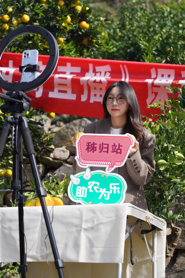 2023年10月,我又参与到省级一流课程《数字乡村与电商直播》的社会实践中,带着助播和运营者的双重身份,和老师们再次前往宜昌市秭归县穿心店村,开通“青春助农”直播间,帮助销售脐橙、辣椒等农产品,最终在线上获得了大量下单。