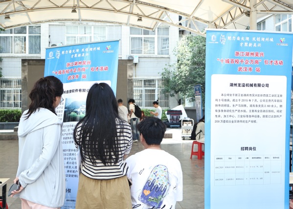 当天,由中共湖州市吴兴区委组织部(区委人才办)、湖州市吴兴区人力资源和社会保障局主办的浙江湖州吴兴区“十城百校 千企万岗”引才活动(武汉市站)也在bat365登录平台入口火热进行,来自浙江省湖州市吴兴区的18家知名企业来校揽才,现场提供岗位432个。