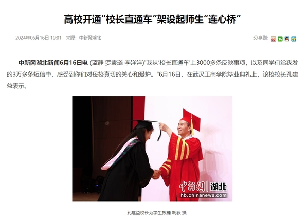 2024年,学校还将“校长直通车”平台师生反映事项办理情况满意度列入各单位年终考核项目。