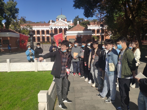 在参观辛亥革命博物馆外立面和内部景观时,宋盈滨让大家仔细观察,“这里的建筑群和绿地设计有什么特点?”并思考、探讨“为什么这样设计?”经过一番讨论,他告诉大家,辛亥革命博物馆的建筑、绿地景观之所以采取对称式设计,是为了让博物馆更加庄严,成为场地中视觉的焦点。