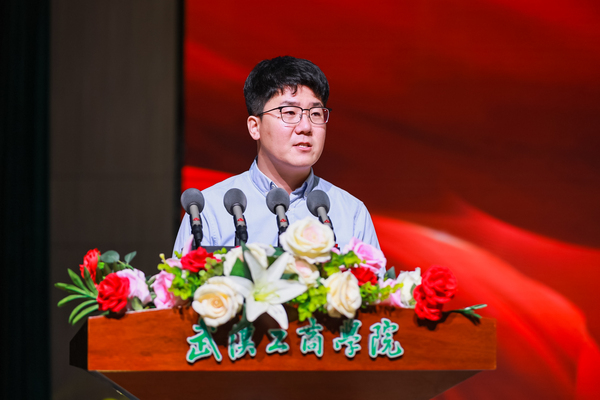 图为宋盈滨在庆祝第40个教师节暨第三届“感动工商人物”表彰大会上作为教师代表发言