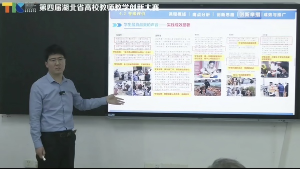 图为宋盈滨在第四届湖北省教师教学创新大赛中进行课程展示