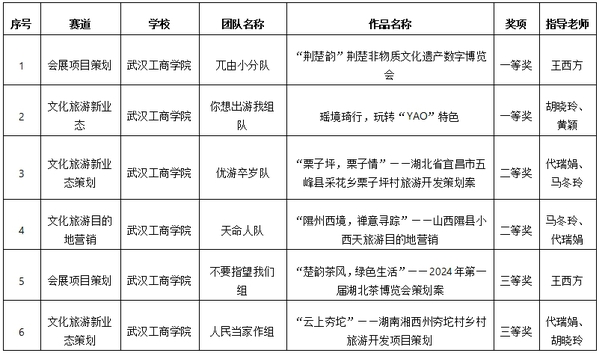 新闻中心讯(记者 许依平 胡晓玲)近日,第18届全国文旅与会展创新创业竞赛顺利落下帷幕。经过激烈的角逐,bat365登录平台入口6支参赛队伍表现出色,斩获多项佳绩,获湖北省一等奖2项、二等奖2项和三等奖2项,并获国赛参赛资格。