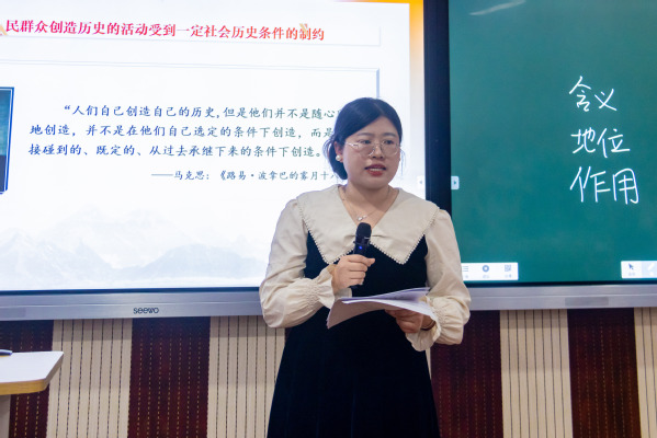 在教学展示过程中,老师们立足教材,结合学情分析,构思课堂教学设计,以丰富的资料和扎实的理论功底为支撑,巧妙运用多媒体辅助工具和板书对课程内容进行生动讲解,突出展示教学重难点内容,紧密衔接教学环节,条理清晰,层层递进,向评委们呈现了一场场生动活泼、精彩纷呈的教学盛宴,充分展现了新时代青年教师的风采。评委充分肯定了老师们在丰富备课资料、创新教学手段与课堂设计等方面所作出的努力和取得的成效,同时围绕教学内容、教学组织、教学特色等方面作了全面点评。