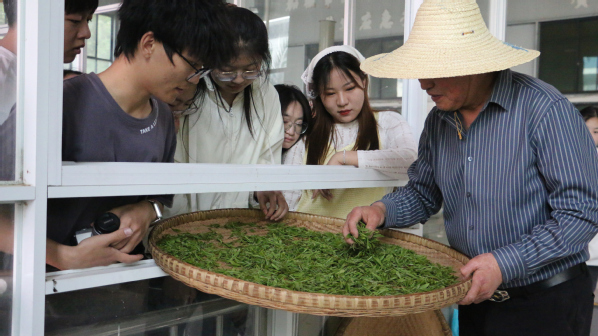 采茶结束后,学生们走进茶厂生产车间,近距离观察茶叶的生产加工流程,并跟着师傅学起了制茶工艺。除了采茶,学生们还参观了脐橙现代化良种繁育基地,感受科技给农业带来的巨大变革。