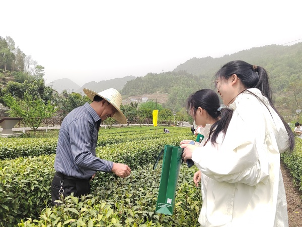 4月12日下午,在圣天庄园茶叶种植示范基地,茶厂副厂长杜太乐手把手地教学生们如何分等级采茶。在他的示范下,学生们分成五个小组开始采茶。只见他们穿梭在茶树间,按照标准仔细采摘,力求保证茶叶的质量。有的小组分工明确,配合默契,效率颇高;有的小组则遇到诸多挑战,如对茶叶品级的判断不够准确,但大家并未气馁,积极向专业人员请教。经过3个小时的劳作,学生们收获颇丰,虽然不少人已满头大汗,但脸上洋溢着劳动带来的喜悦与成就感。