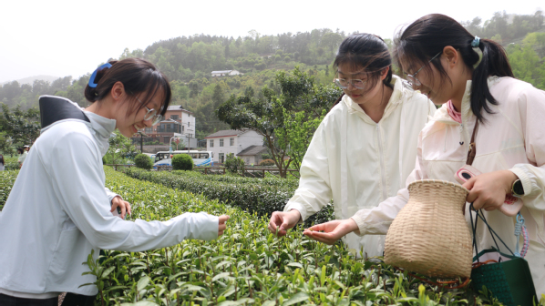 图为学生体验采茶 摄影:周文静