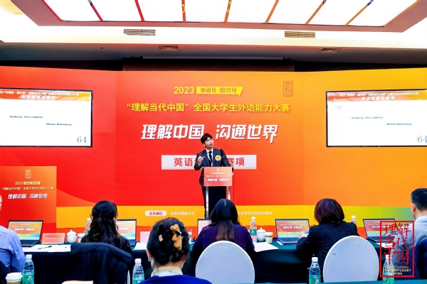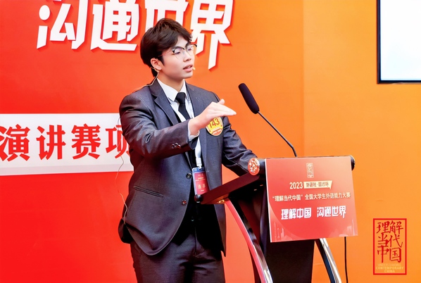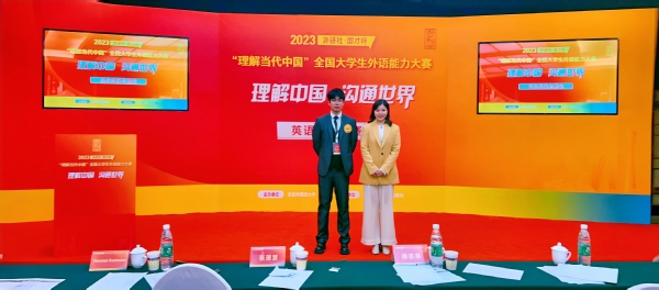 图为齐龙飞在2024年“外研社·国才杯”理解当代中国全国大学生外语能力大赛中斩获国际传播综合赛项全国银奖