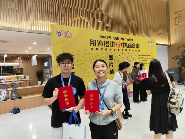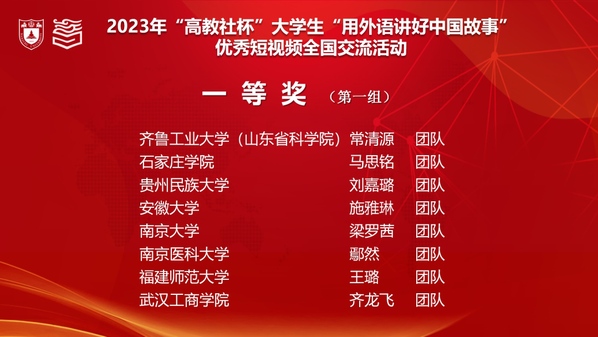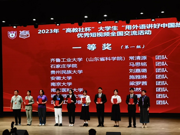 图为齐龙飞团队作品在2023年“高教社杯”大学生“用外语讲好中国故事”优秀短视频全国交流活动中斩获一等奖