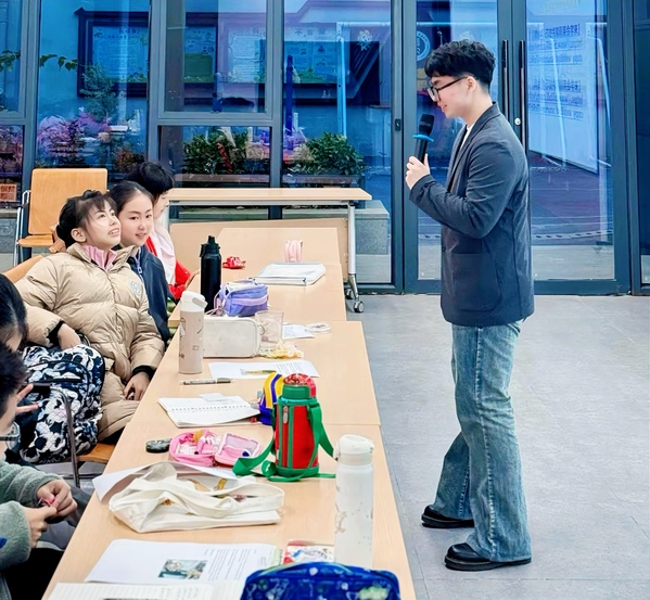 凭借着优异的英语竞赛和学习成绩,2024年起至今,齐龙飞还受聘担任了武汉市洪山区教育局“小小外交官”执训教师。受聘期间,在参加了武汉大学外国语言文学学院口译队系统培训后,他先后在武汉澳新英才学校、华中师范大学附属小学开设教授《英语即兴公众演讲与跨文化交际》课程,这些实践经历都进一步锻炼和提升了他的综合能力。