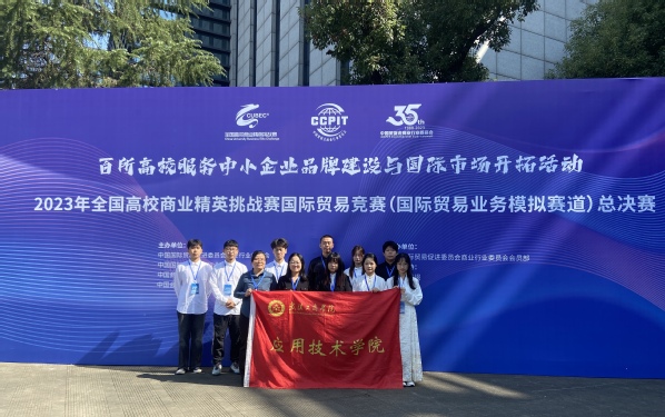 图为沈旭(第二排左二)参加2023年全国高校商业精英挑战赛国际贸易竞赛