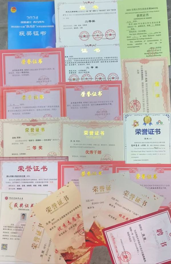 图为沈旭部分获奖证书