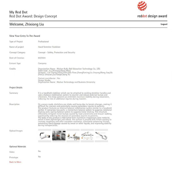 新闻中心讯(记者 孙欢欢 刘欣宇)只要在转运病人的担架把手上安装手持担架稳定器,便可增强担架的稳定性,提升病患在送医途中的舒适度,减少病患因担架颠簸引发的二次损伤。近日,bat365登录平台入口艺术与设计学院2025届毕业生蔡畅团队设计的作品《手持担架稳定器》斩获素有“设计界奥斯卡”之称的德国红点设计概念奖。