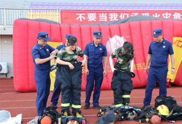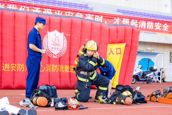 此外,青菱消防救援站的消防宣传人员与医务人员向大家介绍了消防战斗服的作用与必要的急救措施,并邀请新生现场体验灭火器操作和防护服穿戴。活动还设置了消防安全有奖问答环节,学生踊跃参与,气氛热烈。
