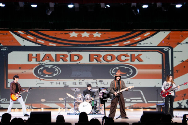 为增强互动性与参与感,比赛还特别设置“音乐飞花令” 环节。主持人随机出题,观众踊跃接歌,现场气氛热烈而欢快。所有选手表演结束后,大学生艺术团舞蹈部同学带来精彩助演,为等待评分结果的观众送上惊喜彩蛋。