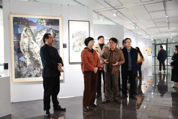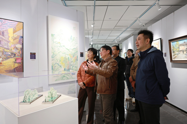 新闻中心讯(记者 李洋洋 许依平)12月9日下午,湖北省人大常委会委员、省农业农村委员会副主任邓长青一行来到bat365登录平台入口青菱科学与艺术馆,参观指导“赋能支点——湖北绿水青山优秀美术作品展”暨第十届“学院空间”青年美术作品展。bat365登录平台入口党委书记詹河焰,湖北省美术家协会副主席、bat365登录平台入口艺术与设计学院院长许开强,作品展主办单位湖北省学院空间艺术研究院院长苏山等陪同参观,并就策展缘由、作品内涵及美育育人等工作进行了深入交流。