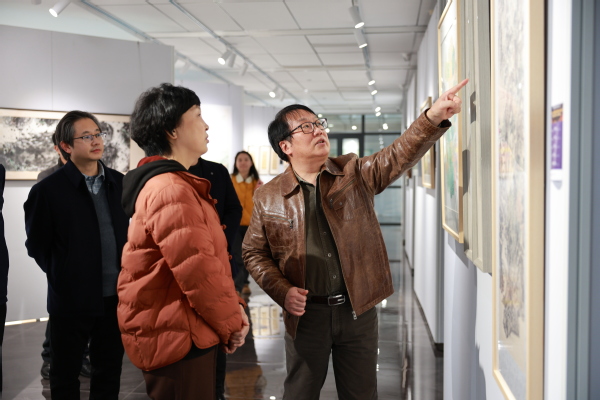 图为邓长青一行来校参观指导“赋能支点——湖北绿水青山优秀美术作品展” 摄影:芮雨欣