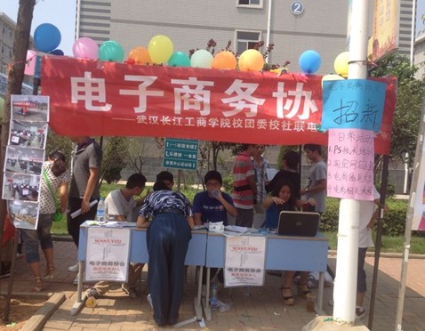本报讯(电子商务协会讯 通讯员 张友祥)2013年9月15、16号电子商务协会在宿舍楼旁的道路上举办了为期两天的新学期招新活动。