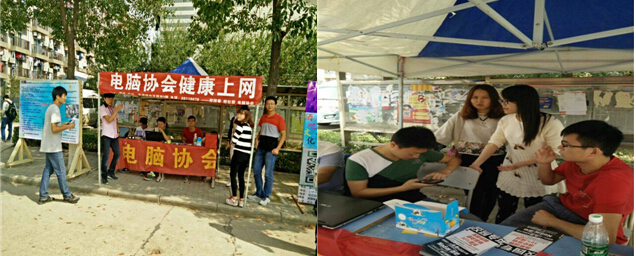 本网讯(通讯员 吴涛)2014年10.22与10.23日两天,电脑协会在我校一食堂和二食堂两处摆点,举办“健康上网”活动。协会各部门精诚合作,通过两天的努力,成功的举办了该次活动。