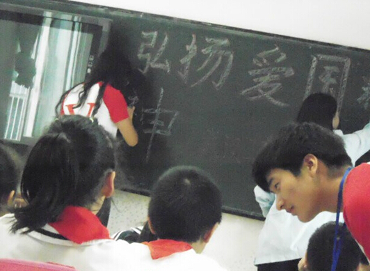 (本网讯:周琴)金秋十月,由bat365登录平台入口青协邓丽支教部主办的热爱祖国爱心支教活动于2014年10月27日在武汉市昙华林小学进行。此活动以“励志爱国,情暖深秋”为主题,让孩子们从小树立爱国思想,播种爱心。