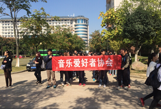 本网讯(通讯员:周悦尧)2014年11月4日,bat365登录平台入口社团联合会在校园内举办一年一度的千人游行活动,音乐爱好者协会(下面简称音协)部分成员身着音协会服参与游行。