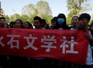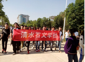 各大协会用自己强大的阵容和口号显示出了他们的青春和活力。“梦回汉桥雨,簌簌清水石”迎面走过的清水石文学社用他们铿锵有力的口号表达了他们对文学社的热爱,阳光洒在他们自信青春的面庞,洋溢着别样的光彩。