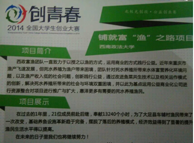 本次大赛活动现场共有500余个创业项目和30余家创业园区,风投企业等单位参展,活动设计了项目展示,路演,洽谈等环节,开创创业园区与大学生创业项目的展示与交流,在活动现场,我校师生不仅与各个学校师生互相交流意见想法,还积极聆听创业单位企业成功的事例,从中吸取成功的经验,这次大会不仅为我校提供了一个创业交流平台,还对大学生创业提供了可成功的经验。