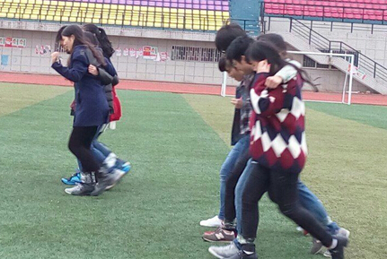 在会长和各个部长的带领下我们先后进行了三人四足,背部运动,挪吃饼干这三项活动。三人四足是我们每个部门之间的一个比赛项目,我们从寸步难行到行走自如,这正磨合着人与人之间的团结协作能力。背部运动是由两个人一个组行程,活动期间只有两个人同心协力才能发挥最好,由于身高的差距有的组很难完成,他们没有放弃,还是完成任务。部员们每个人都认真努力着。挪吃饼干也是很有趣的。活动中的欢笑让我们忆起童年般的乐趣,爽朗的笑声成了我们的主旋律。青春无极限,对于挑战,我们随时准备着!番场景好不热闹! 趣味运动会在大家的笑声中圆满收场,并且同学们也都“满载而归” ,带着自己赢来的奖品,无比地满足和喜悦!