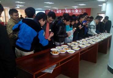 9:00铃声刚刚响起,首先进行的是主持人开场致词,其次是会长发表致词,再次就是嘉宾进行发言,各个创业团队对自身的成长及发展的历程进行了深刻的讲解,对自身创业经验的分享,其次,我校创业者协会会长对我校的创业经历进行讲解之后,就进行到了冷餐会环节。