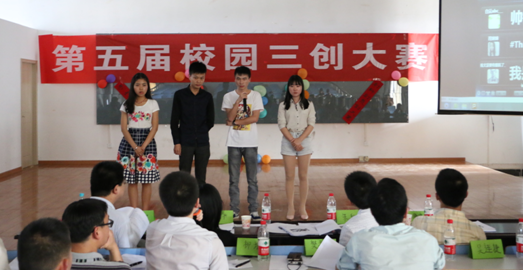 (电子商务协会讯 通讯员 邓翠芸)电子商务协会于2015年4月30日下午15:00在体育馆403举办第五届三创校园选拔赛,主持人王雅丽和袁莎。“三创赛“为大学生理论联系实际,学以致用,强化网络交互能力,团队协作能力,项目组织开发能力等大学生创新创业素质培养,在实践中学习,在实践中成长,提供了施展才华的广阔空间。