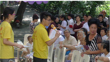 欢歌笑语聚一堂,尊老敬老来帮忙,换装分组的义工们。bat365登录平台入口的刘澄海担任今天的主持,黄鹤艺术团的老师们、道能义工、社区居民为大家带来了歌舞表演。彭刘杨社区居民王志义爷爷,今年81岁高寿了,依然是老当益壮,一首诗朗诵《至我亲爱的战友》和一曲《送别》将现场的气氛推向了高潮,犹为醒目的是他头上那顶八路军的灰色四角帽,和他结束演出时挥手说的:“战友们,再见!”。