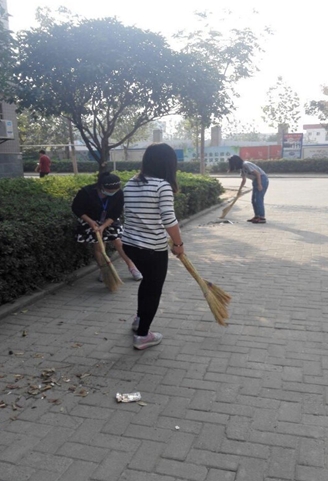 2015年10月22号星期四下午两点四十分,卫生大扫除正式开始了。活动由校学生会和马研组织,数十名同学手持扫帚,铲子认真打扫卫生。大家扫地,铲除小广告,洒水,把花坛里的垃圾清理干净,尽力做到最好!