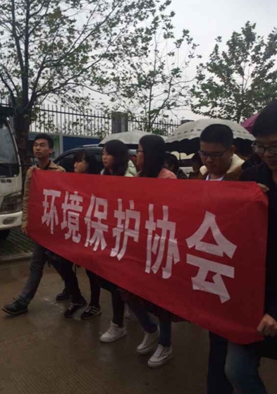 活动开始之前,校社团联合会进行了开场舞的表演,尽管天气比较冷,同学们还是卖力的表演好各个动作,十分的有活力,当时正值下课,许多同学都停留在综合楼门口观看了开场表演。游行开始时下起了小雨,尽管这样,各个社团的成员还是撑起了伞,坚持走完了从综合楼到一食堂的游行,一路上,各个社团都大声叫喊着自己社团的口号,“我们是环境保护协会,我们的口号是不求你一时的心动,但求你永恒的心跳。”尽管我们社团女生比较多,但还是很大声的喊出了自己的口号,每个社团都在比谁的声音大,谁的气势高,都不肯认输。