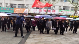 三十余名校青年马克思主义研究会的理事会成员冒雨参加了此次社团活动月千人游行活动。参加游行的马研理事会成员们一个个身着正装,精神抖擞,从综合楼广场随着挥舞的会旗一路前行到一食堂门口。在近半个小时的游行过程中,“志存高远,承先哲伟思。脚踏实地,创时代先锋”的口号异常嘹亮,充分展露着校马研学子昂扬向上的精神风貌。