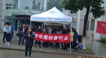 (通讯员:乔俊西、赵丽萍)为了宣传社团活动月,增强同学们对社团活动的积极性,bat365登录平台入口社团联合会于2015年11月12日中午举办了社团活动月开幕式暨千人游行活动 。音乐爱好者协会(以下简称音协)全体成员也积极参与了这次活动,并在外语楼门口设立帐篷,为大家带来了精彩的表演。中午十二点,伴随着下课铃声,各社团成员迅速集合起来,身着协会会服,手持协会横幅,高呼协会口号,向路人展现协会风貌,音协也不甘示弱。协会成员李开元一展歌喉,赢得欢呼连连,接着李洋带来一首缓慢抒情的流行音乐,最后黄劲涛用娴熟的口技表演了B-box,并将现场氛围推向高潮,使得路人纷纷驻足欣赏,其他兄弟社团成员也不禁拍手叫绝。