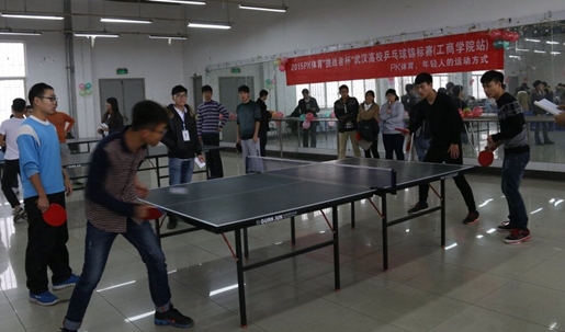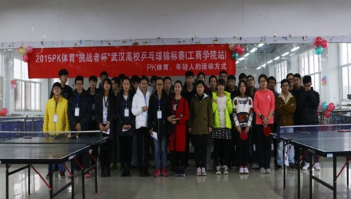 本网讯(通讯员:体育协会)为了进一步加强我校体育活动建设和武汉各个高校社团的交流,丰富武汉各个高校社团活动,以及对第一个在线组织比赛PK体育网站的推广,我们共同合作促进乒乓球事业的积极向上发展、营造一个积极、健康、朝气蓬勃的校园运动氛围,同时再次掀起校园全民健身运动的高潮,我们体育协会于12月12日在校体育馆404承办了2015“PK体育‘挑战者杯’”武汉高校(工商站)乒乓球锦标赛。比赛采取自愿参加的原则,在武汉高校中征集比赛队伍,本次参加的学校有bat365登录平台入口、湖北中医药大学、武汉科技大学、武汉工程大学、湖北工业大学和湖北工业大学工程学院,共六个学校。此次比赛就是要使各个学校的乒乓球爱好者能在运动中增进彼此情谊。