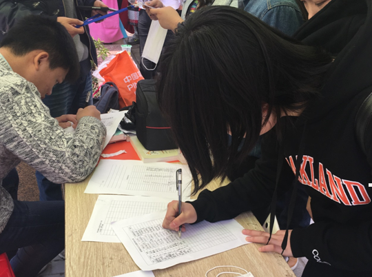其中有个招募点处的门口有位学生站了很久,记者上前了解到,该生是会展经济与管理系的成子灿同学。他告诉记者,他非常想去阳光助残。“我上学期有机会和室友去过一次武汉爱心儿童帮扶中心助残,当我进去的时候,我惊讶了,里面没有声音,纸片掉下来都能听到。我一直心情很沉重,我觉得他们需要更多的关心和帮助,他们比普通的弱势群体更难融入这个社会。我只是个大学生,还没有能力为他们提供物质上的帮助,我只能争取机会去关心陪一下这些孩子,而且在陪伴他们的同时,我觉得很有意义,感觉自己做了一件了不起的事。”