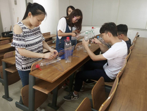 此次制作环保瓶子需空瓶子剪刀等材料,授课前按例分好小组,按一理事教多个会员的模式进行教授,先用笔描绘好图案,在授课前的通知已经查阅好相关的图片步骤以便参考,用剪刀将空瓶子检出图案边角,再加以修饰跟描绘,最后翘以相应弧度,一个个美丽的环保瓶子就做好啦,理事提前做好了样品以便会员学习时候参考,当理事教一名会员学习时,其他会员可以参考理事已经做好的样品进行模仿并加以个人修饰,学会的理事主动去教还没学会的理事,大家你帮我我帮你最后一块做成了一个个美丽的环保瓶子,理事们学习的也很快,最后将垃圾带离教室,摆好桌椅。整个教室洋溢着欢声笑语,心愿创艺手工社被丢弃的的塑料瓶子做成了一个个美观又有用的的环保瓶子,看到大家学会制作环保瓶子后幸福满足的笑容,我们知道所有的努力都是值得的。