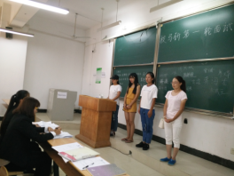 中午12:10,面试正式开始。在此之前,面试处门外早已站满了排着整齐队列的前来面试的候场新生。引导人员将候场人员带到指定地点,然后分批进入面试教室。开始是由前来面试的新生作简洁的自我介绍,随后由面试官对其提出问题。面试紧张而又有秩序地进行着。对于面试官的提问,一部分面试者表现得淡定冷静、从容不迫,对每个问题都能对答如流,表现得十分积极自信,其中也不乏一些新生略显羞涩。下午14:00,紧张的第一轮招新面试就此告一段落。会长陈谦通知面试官们召开总结会议,总结面试中的一些问题并且统计面试结果。