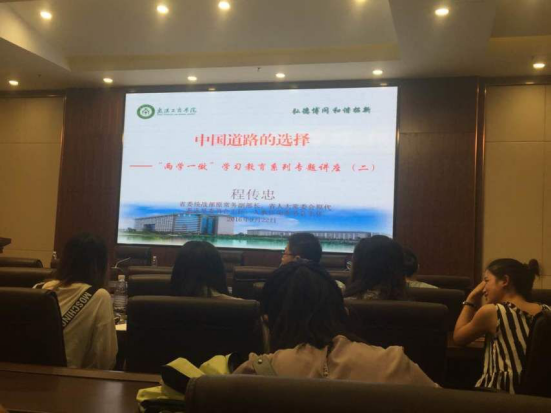 程传忠同志根据中国发展的前景以及所遇到的难题,重点突出了中国要勇于变革,勇于实现中国梦。并引用习主席的一句话“不忘初心,继续前行”来告诫我们要永远记住中国梦是我们实现中华民族伟大复兴的重要措施。中国人只有不断抗争,不断奋起,坚持共产党领导,坚持人民当家作主。此外,他又提出中美文化的差异,例如:美国----华盛顿公司,中国----北京公司...等等,表明了各国文化只有不断的思想碰撞,才会有更深层次的变革,才会更早的实现中华民族的伟大复兴。1949年,毛泽东同志在开国大典上,“中国人民从此站起来了”一句话震耳欲聋,令全国人民从此昂首挺胸,不在屈尊于各国列强之下!“历史是现实的根源,任何的今天都来自昨天。”这简短的一句话形象的表达了中国发展的变化。伟大的中国是需要我们共同去创造的!