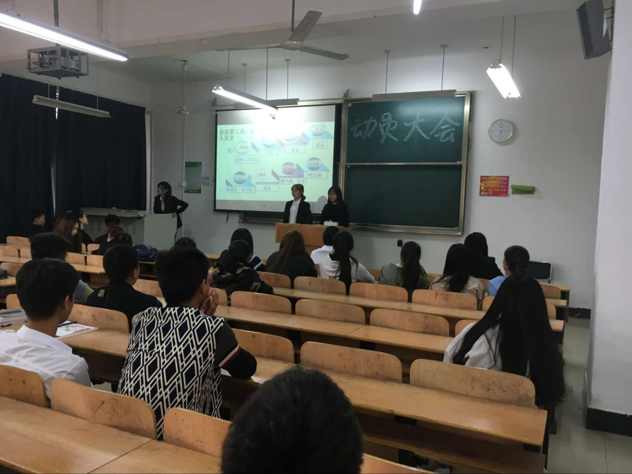 准备动员大会需要耗费很大的精力,但是职业圈圈成员们的共同努力下,全体理事会部长干部早早穿着整齐的正装 ,戴着工作证进行会场布置。然后在秘书部部长的主持下,首先由职业圈圈创始者郑建丰学长发言,他对我们进行了深切的祝愿,以及对我们的指导。再就是六个部门的部长自我介绍 以及对新理事会成员的祝福,其次就是两位副会对新理事会成员的期望和祝愿。最后就是会长殷瑞的发言。当然这次大会的成果也是显而易见的,我们以职业圈圈的这种蓬勃向上的朝气赢得了广大新理事成员的支持与赞扬,大会过程中虽然我们也遇到了各种小问题,但是在职业圈圈社团成员的共同努力下一切困难都得以顺利解决,大会活动也得以完美落幕。