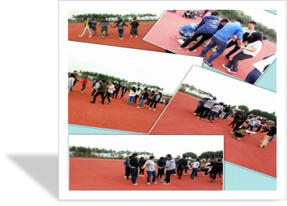 在这次活动中,我们总共进行了五个游戏,分别是“解手链”、“十人九足”、“袋鼠跳”、“链接加速”和“螃蟹跑”。看似简简单单的几个游戏,但是由于组员之间默契的不足,还是有不少的部长受惩罚——俯卧撑。第一个:解手链——就是所有组员手牵手结成一张网,然后组员之间通过身体的移动使网变成圆,并且是组员之间不松开手的情况下。这样看着好简单啊!可是在实际过程中,解开手链还是让某些部门花费了过的时间。唉,这时候部长就有一丢丢悲催咯,终于解开了手链,还得加上几个俯卧撑啊!