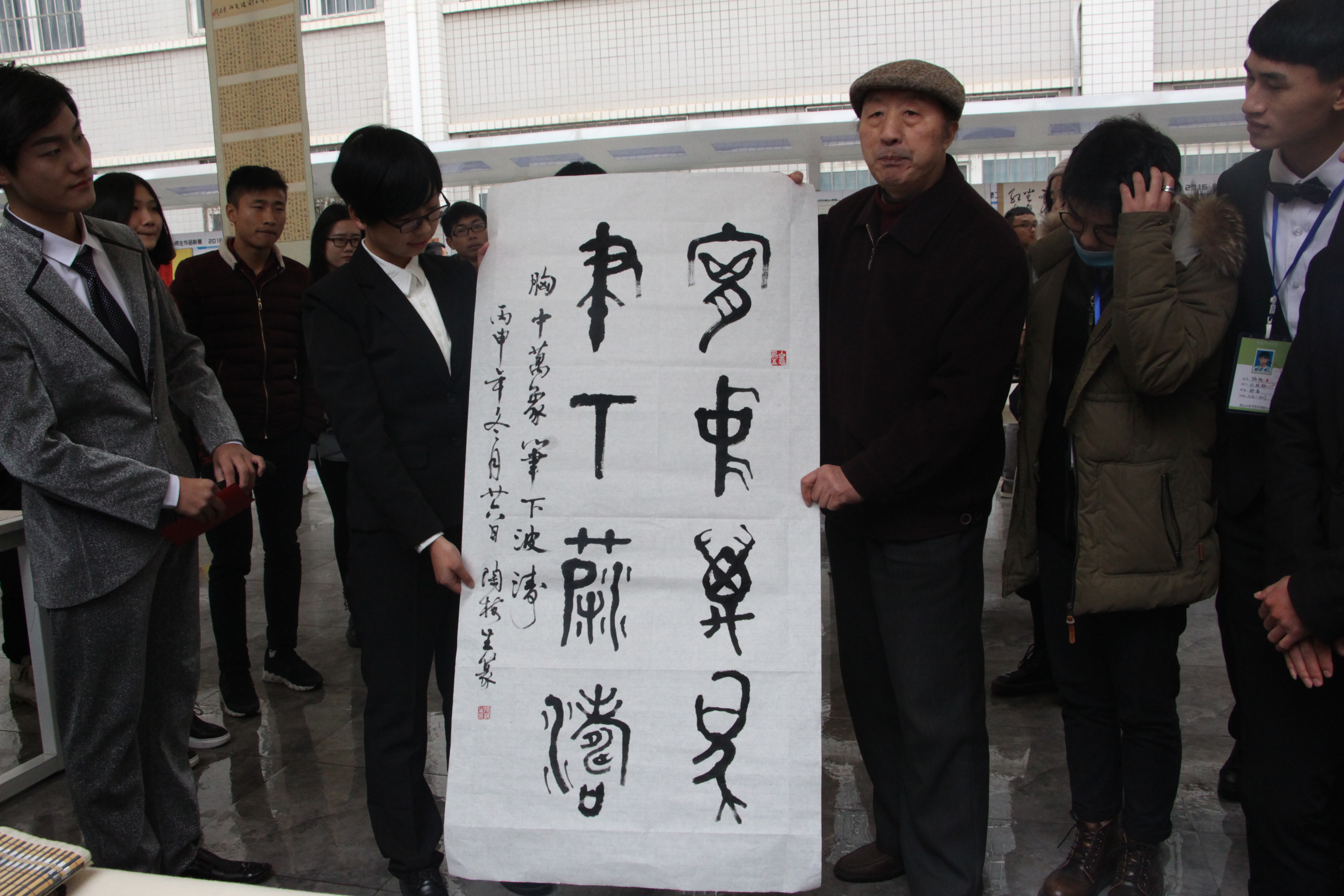 本通讯(通讯员:谢圣敏)翰墨怡且乐,书法寿而康。中国书法,字里千秋,挥毫泼墨,行云流水落纸间;寥寥数笔丹青于白宣之上,中国画讲求“以形写神”,追求一种“妙在似与不似之间的感觉”。书画是我国悠久的文化精髓, 二者作为民族传承文化的瑰宝,是表达心灵情感和东方审美的一种独特方式。,为了传承与加深同学们对我国书法、绘画艺术的了解,让广大书法、绘画兴趣爱好者互相交流、学习、共同进步,让传统与现代共容,让深厚的翰墨与飞扬的青春轻轻应和。协会于2016年12月24日在艺术楼中庭举办了第十届雅集书画交流会,不仅邀请了武汉40多所高校书画爱好者,还邀请了资深书法爱好者陶老校长莅临对大家进行指导与交流互动。