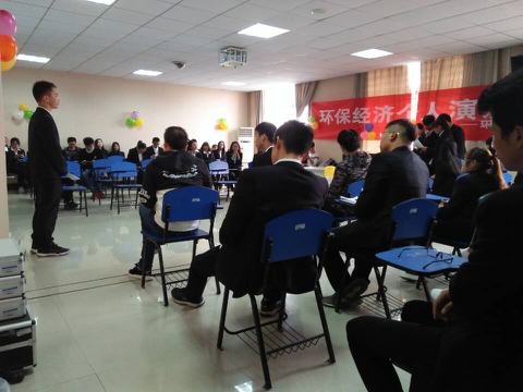 此次组织的辩论赛以“经济环保”为主题,从前期的宣传工作以来共有15支队伍参赛,每支队伍有1至4人。在10月20日周日上午9点正式开始了辩论赛的第一场比赛:个人演讲赛。
