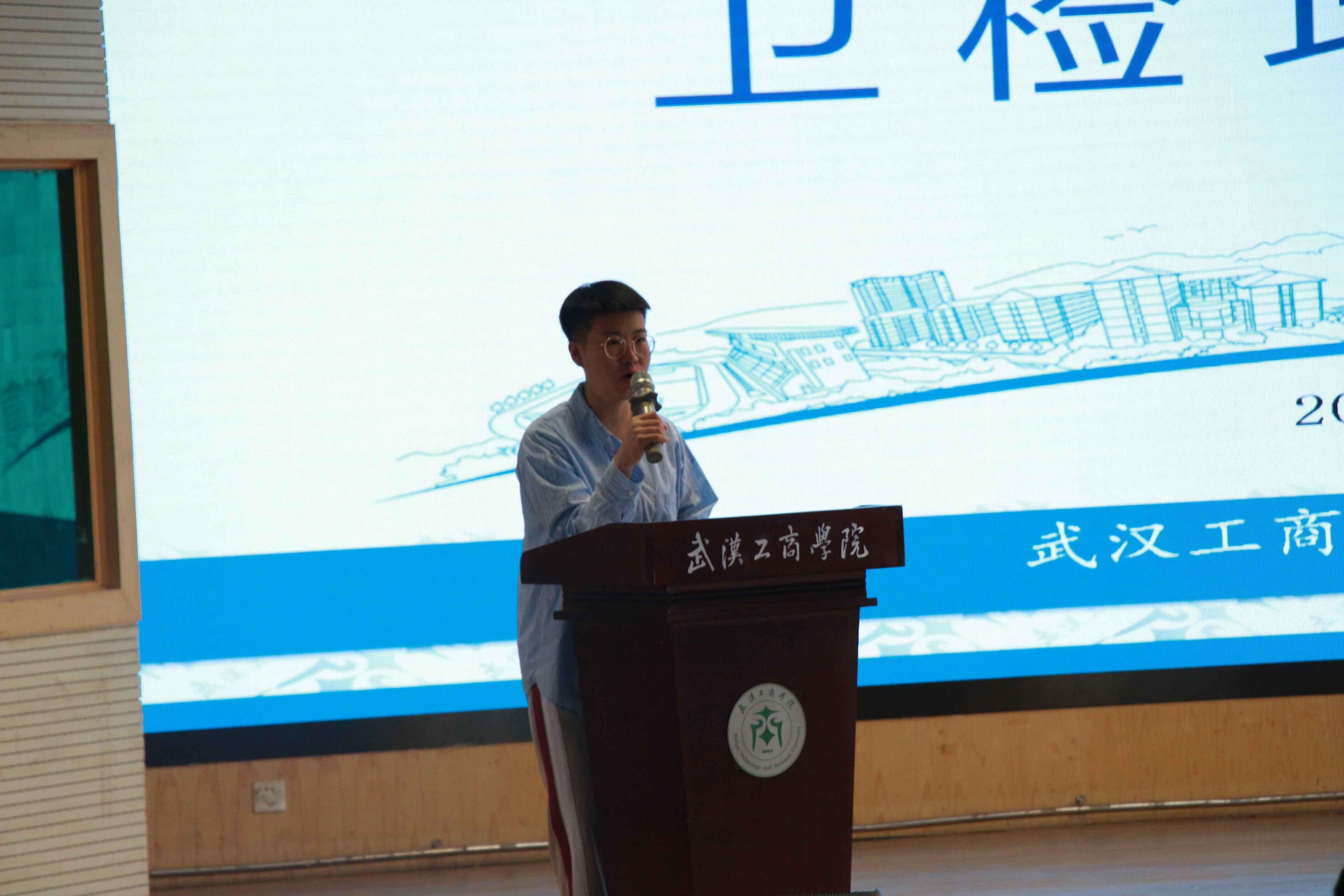 首先叶之培副书记在大会上发表讲话。在叶之培副书记的讲话中强调了卫生检查工作开展的必要性:“卫生工作是衡量一个宿舍精神风貌、文化氛围的一面镜子,它与宿舍的文化建设息息相关。宿舍环境的好坏直接影响了同学们生活质量的高低。”叶之培副书记还对执行卫检的工作人员提出要求。要求工作人员要秉持认真检查、立场公正、评分严格的态度检查并且要注意自己的言行举止。随后,校学生会副书记彭珍上台发表讲话,她对卫检工作进行安排并针对我校寝室卫生的相关问题提出应对方案。然后,校学生会生活部干事杨维讲解卫检PPT详细讲解卫检相关工作。管理学院、电子商务学院、环境与生物工程学院生活部部长分享了卫检经验以及注意事项。最后,校学生会副主席丁启航、彭珍为优秀生活委员、寝室长进行颁奖。